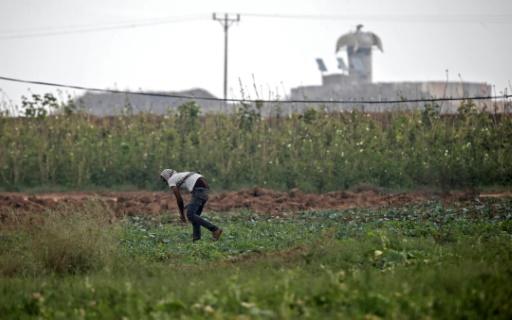 مزارع فلسطيني يعمل في أحد الحقول بالقرب من السياج الحدودي مع إسرائيل شرق مدينة غزة في 16 تشرين الأول/أكتوبر 2019 afp_tickers