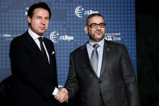 رئيس الوزراء الإيطالي السابق جوزيبي كونتي أثناء اسقباله رئيس المجلس الأعلى للدولة الليبي خالد المشري في باليرمو بتاريخ 12 تشرين الثاني/نوفمبر 2018 afp_tickers