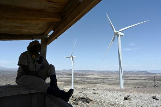 رجل يحرس توربينات في محطة طاقة الرياح في بحيرة توركانا في السادس من آب/أغسطس 2019 afp_tickers
