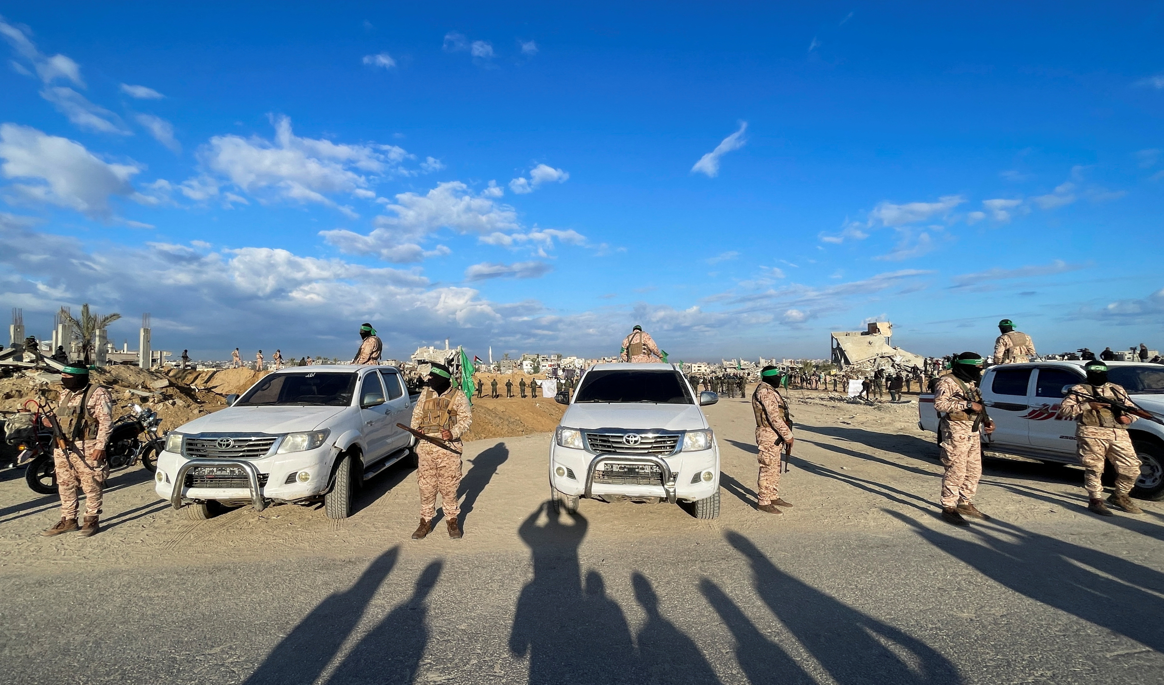 (رويترز) – أظهر بث مباشر وصول سيارات تابعة للصليب الأحمر إلى خان يونس بقطاع غزة قبل تسليم حركة المقاومة الإسلامية الفلسطينية (حماس) رهائن إسرائيليين يوم السبت.