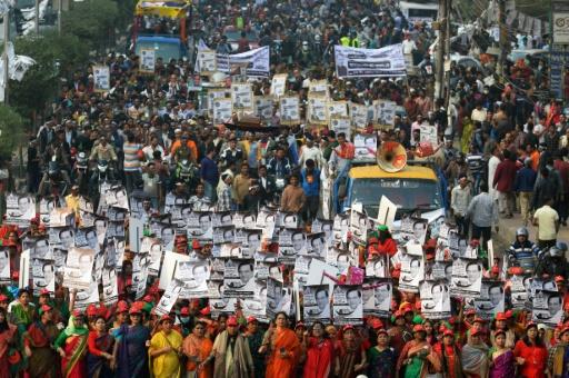 أنصار حزب رابطة عوامي الحاكم يشاركون في مسيرة في أحد شوارع دكا، في 27 كانون الأول/ديسمبر 2018 afp_tickers