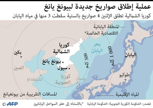 بيونغ يانغ تطلق أربعة صواريخ سقطت ثلاثة منها في مياه اليابان