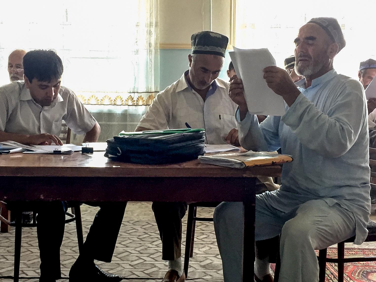 بعد ذلك، أخذ الفلاحون استراحة للتشاور. وفي ماتشا، كما هو الحال في جميع المناطق الريفية في البلاد، من يُقررُ كلَّ شيء هم الرجال المُغطاة رؤوسهم بالطاقيات، والذين حفر الزمنُ أخاديد عميقة على وجوههم. المناقشات تدور بالطاجيكية، ولكن يُمكننا تمييز كلمات مثل “جرّار”، و”دولار”، و”تحديد الأسعار”. لقد اختاروا قبول العرض، وقالوا: “هذا العام، لدينا الإمكانية لأن كثيرين منّا زرعوا نفس النوعية من القطن”.