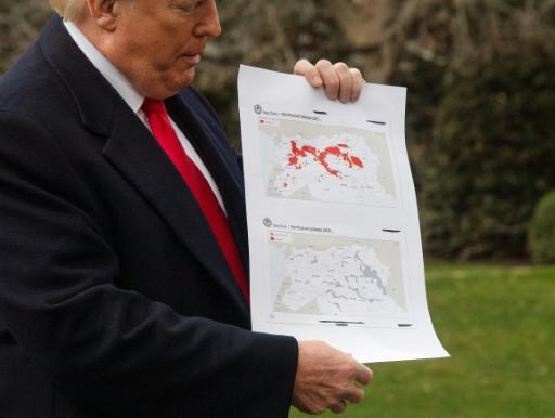 ترامب يشيد بقرب نهاية “خلافة” تنظيم الدولة الإسلامية مستعيناً بخريطة