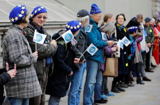 شكل مئات من المواطنين الاوروبيين المقيمين في المملكة المتحدة والرعايا البريطانيين المقيمين في دول الاتحاد الاوروبي، سلسلة بشرية امام مقر الحكومة البريطانية بلندن الاثنين لمطالبة الحكومة البريطانية بضمان حقوقهم في حال حصول بريكست بدون اتفاق مع الاتحاد الاوروبي.
