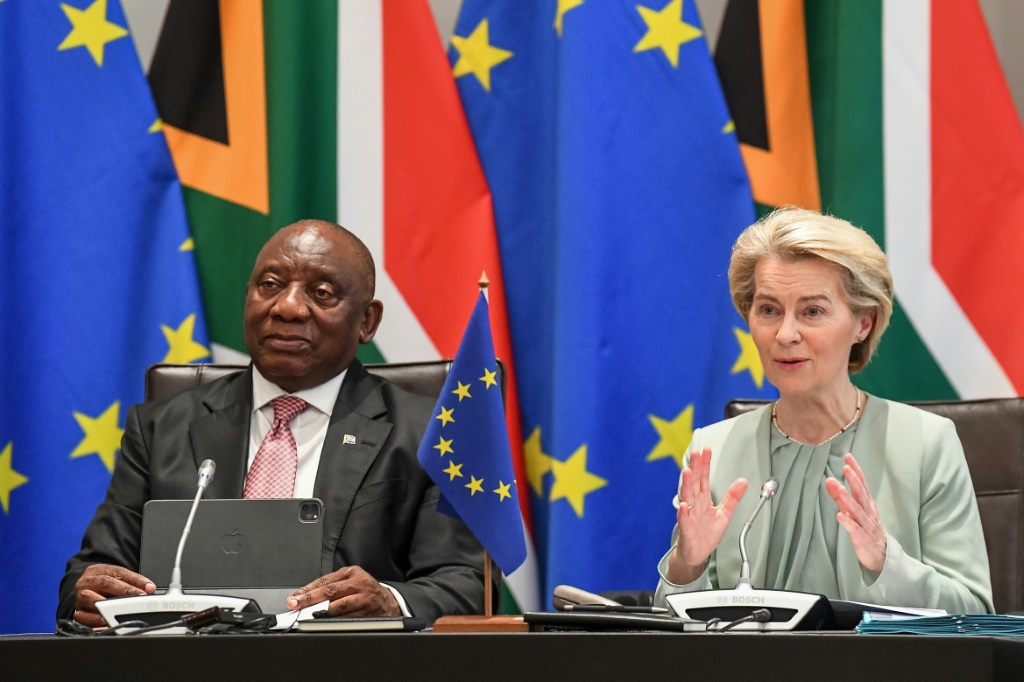 وأعلنت فون دير لايين عن خطّة استثمار بحوالى خمسة مليارات يورو في جنوب إفريقيا، تشتمل على “تمويل للانتقال في مجال الطاقة”، فضلا عن مبلغ “لتطوير صناعة اللقاحات”، من دون تقديم مزيد من التفاصيل.