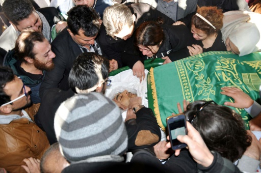وشارك العشرات في جنازة الجرف (37 عاما) في مدينة غازي عنتاب جنوب شرق تركيا قبل ان يوارى جثمانه، بحسب مصور فرانس برس.