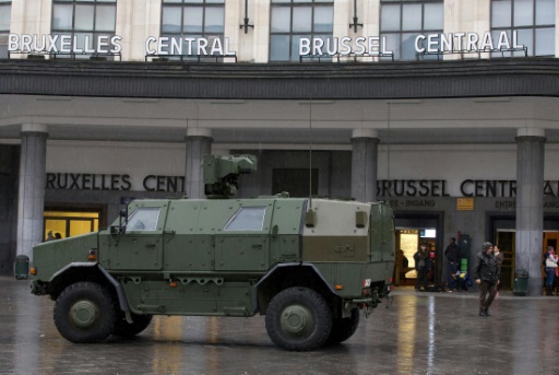 الية عسكرية امام محطة القطار في بروكسل 21 نوفمبر 2015 afp_tickers