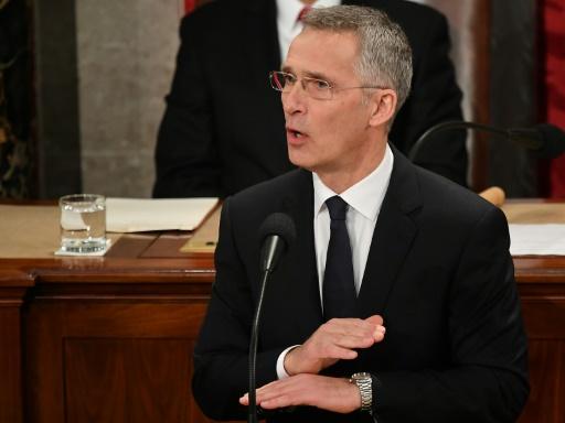 الامين العام للحلف الاطلسي ينس ستولتنبرغ متحدثا امام الكونغرس الاميركي في الثالث من نيسان/ابريل 2019 afp_tickers