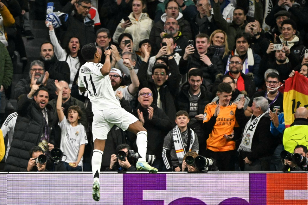 على ملعب “سانتياغو برنابيو” في العاصمة الإسبانية، افتتح رودريغو التسجيل من أول فرصة خطرة للريال اثر عرضية من مواطنه فينيسيوس على الجهة اليسرى، فوصلت الكرة إليه بعدما فشل الانكليزي جود بيلينغهام في السيطرة عليها سددها سريعة في الشباك (23).