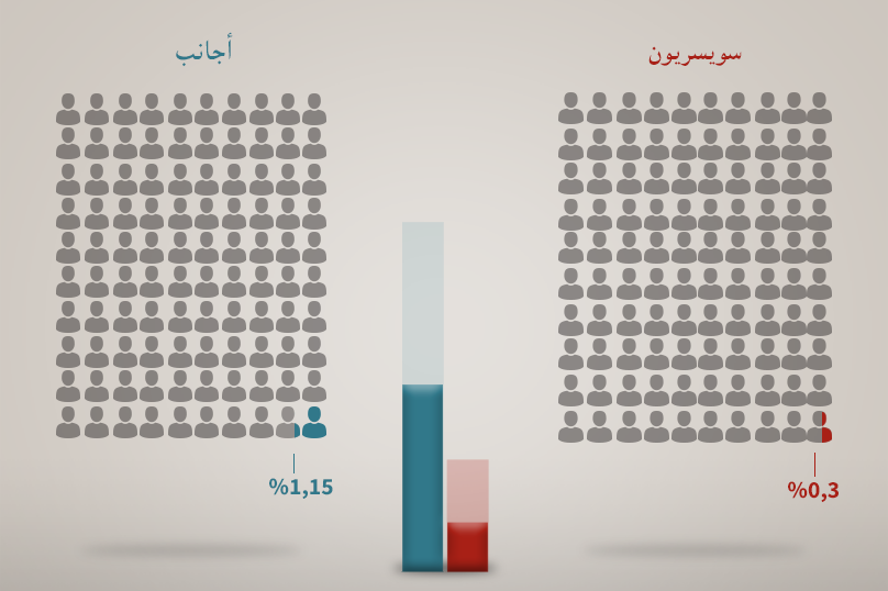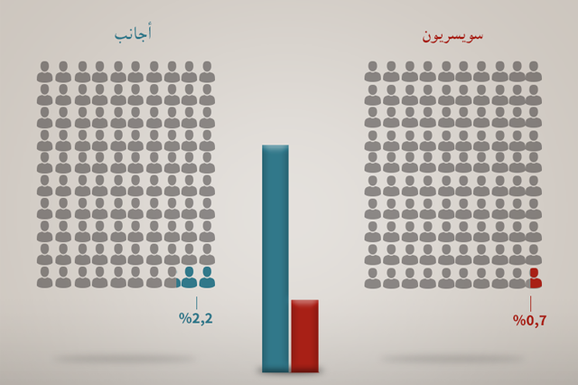 وفيما يتعلق بالأشخاص المقيمين في الكنفدرالية، أظهرت إحصائيات الشرطة المتعلقة بالأعمال الإجرامية المُرتكبة في عام 2014 الصادرة عن المكتب الفدرالي للإحصاء أن نسبة الأجانب تفوق بحوالي مرتين نسبة السويسريين حينما يتعلق الأمر بالإدانات الفعلية.