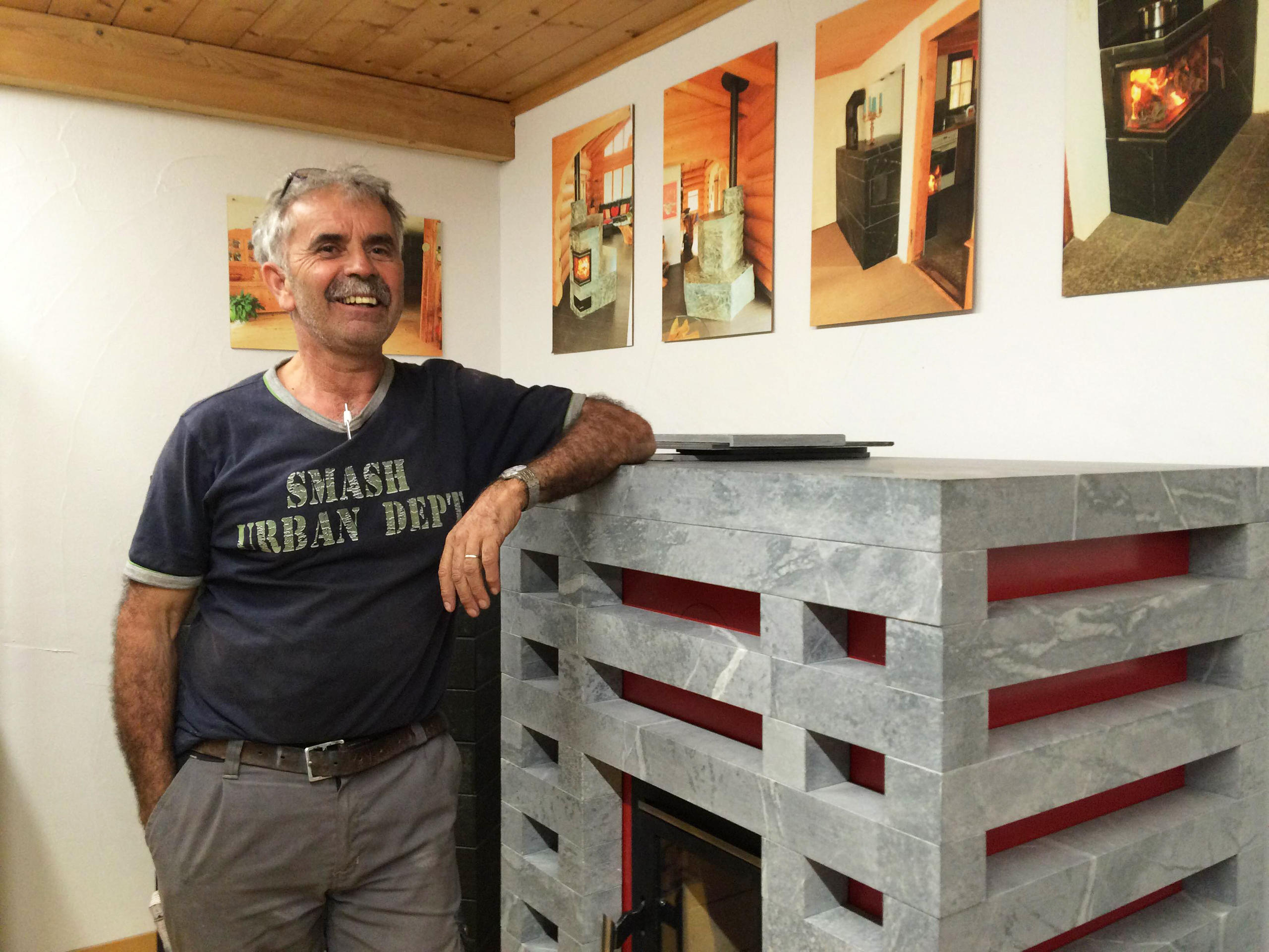 لا مكان بعد الآن لـ “أصالة الإعتماد على الذات”: أوتو ديبلاتسيس، عمدة بلدة ‘سورّاين’ في شركة بناء المواقد الخاصة به. swissinfo.ch