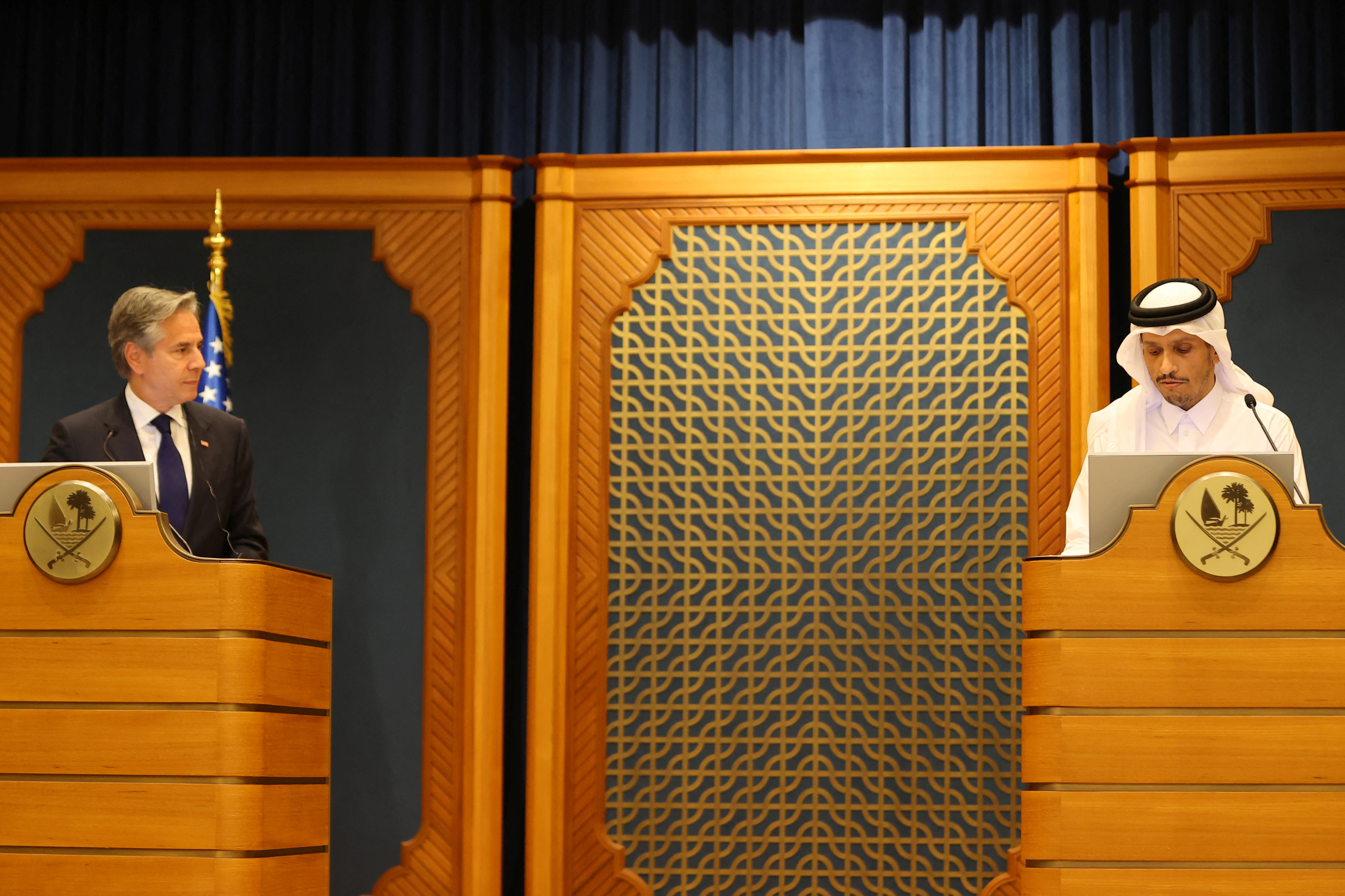 وقال خلال مؤتمر صحفي في الدوحة مع وزير الخارجية الأمريكي أنتوني بلينكن إن المقترح الحالي لوقف إطلاق النار في القطاع الفلسطيني هو الطريقة المثلى لسد الفجوات بين حركة المقاومة الإسلامية الفلسطينية (حماس) وإسرائيل.