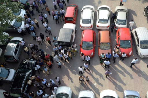 هنود يغادرون مركز عملهم بعد الزلزال في نيودلهي في 26 تشرين الاول/اكتوبر 2015 afp_tickers