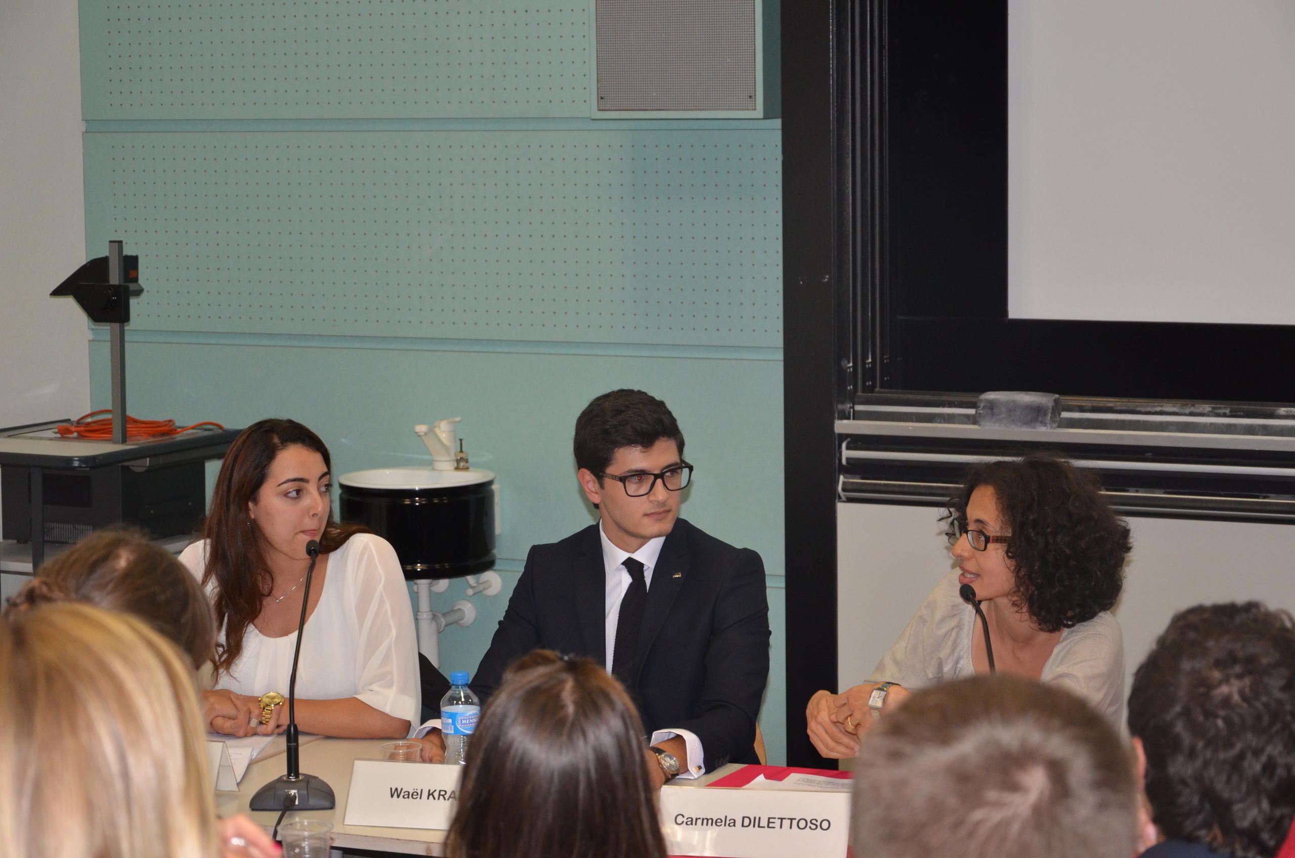 بحضور آنيا فايدن غيلبا، مُستشارة الدولة بكانتون جنيف، وعدد من الشخصيات الأكاديمية والبحثية والسياسية المرموقة في جنيف وتونس، جَمَعَت إحدى القاعات الدراسية بجامعة جنيف مساء الإثنين 19 سبتمبر 2016 بين مجموعة من الطلبة السويسريين والتونسيين في المراحل الدراسية الثانوية والجامعية في ندوة حوارية حملت عنوان “سويسرا- تونس: تبادل الرؤى حول ديمقراطية متحركة”رابط خارجي.