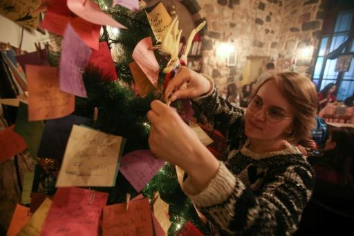 منذ أكثر من ثلاث سنوات، يتبع صاحب المقهى برنار جمعة (39 عاماً) تقليد تزيين الشجرة بالأمنيات عوضاً عن الزينة التقليدية من حبال ملونة وطابات وأجراس.
