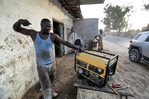 تقني يعمل في صيانة مولد كهربائي خارج محل في طرابلس في 26 آب/أغسطس 2021 afp_tickers