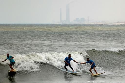 راكبو أمواج فلسطينيون على شاطئ غزة في 22 حزيران/يونيو 2022 afp_tickers
