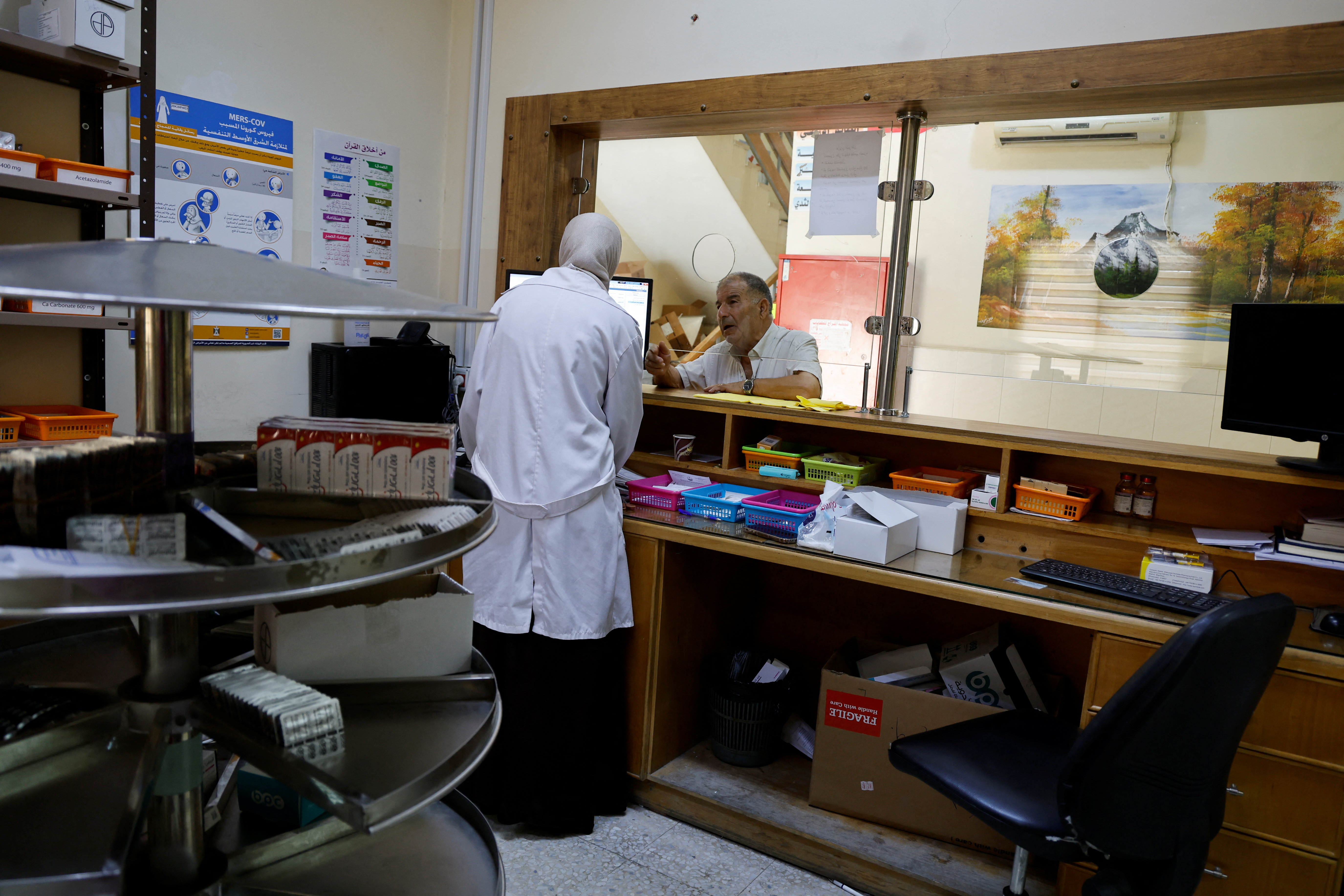 وقطعت حياة حمدان، وهي امرأة في الخمسينات من عمرها، مسافة عشرة كيلومترات من بلدة عرابة إلى عيادة حكومية في جنين أملا في العثور على دواء مدعوم لزوجها الذي يقبع على كرسي متحرك. لكن الكثير من أرفف الصيدلية كان فارغا.