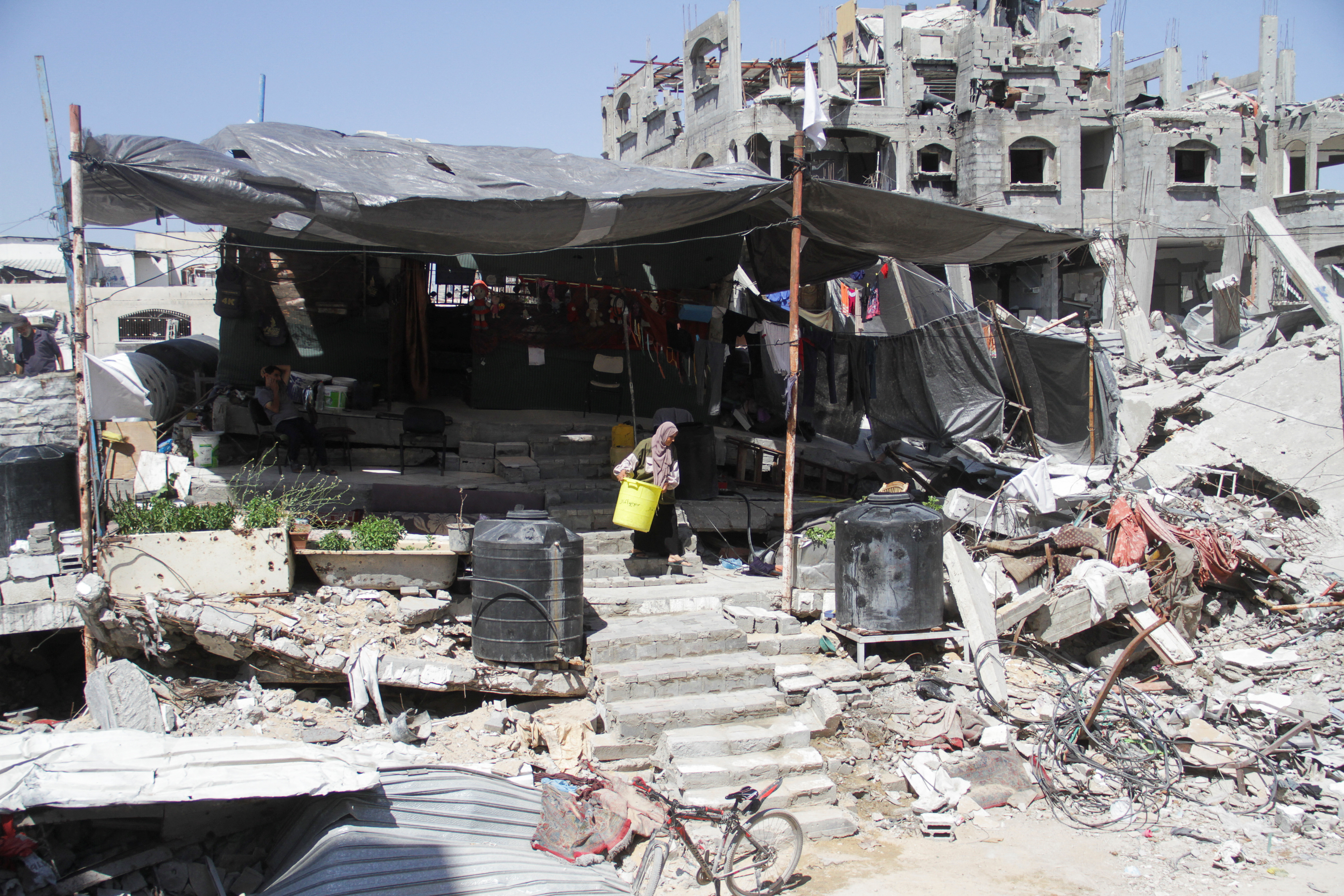 عائلة فلسطينية تعيش في خيمة على أنقاض منزلها المدمر في غزة