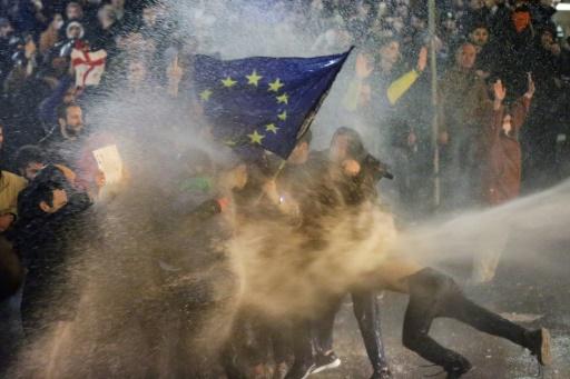 استخدمت الشرطة الجورجية مساء الأربعاء خراطيم المياه لتفريق عشرات آلاف المتظاهرين الذين احتشدوا في تبليسي اعتراضاً على مشروع قانون يهدّد عمل وسائل الإعلام والمنظمات غير الحكومية، وشبّهه معارضوه بقانون روسي أقرّ لإسكات المعارضين.