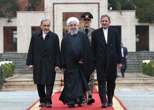 صورة من الرئاسة الإيرانية بتاريخ 17 كانون الأول/ديسمبر 2019، تظهر النائب الأول للرئيس اسحاق جهانغيري (يمين) وعلي أكبر ولايتي (يسار) مع الرئيس حسن روحاني. afp_tickers