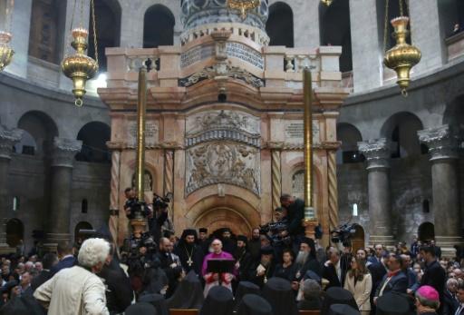 أعيد الاربعاء فتح الموقع الذي يعتقد أنه قبر المسيح، بحسب الانجيل، في كنيسة القيامة في القدس أمام الزوار بعد تسعة أشهر من أعمال الترميم.