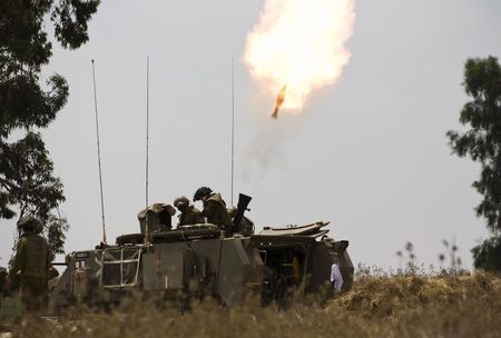 جنود اسرائيليون يطلقون النار باتجاه قطاع غزة يوم الثلاثاء. تصوير: امير كوهين - رويترز. reuters_tickers
