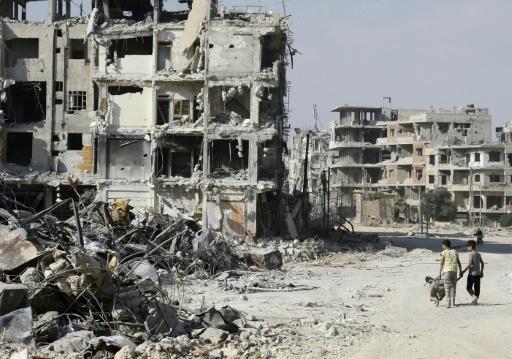 في شوارع المدينة القريبة من دمشق والتي تحول بعضها الى جبال من الركام وبدا خاليا من أي حركة للمدنيين، تعمل آليات ضخمة منذ أسابيع على فتح الطرق الرئيسية ورفع الانقاض وهدم أبنية منهارة في إطار مخطط رسمي لإخراج كميات ضخمة من الأنقاض من المدينة.