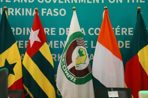 أعلام الدول الاعضاء في الجماعة الاقتصادية لدول غرب افريقيا خلال قمة لهذه المنظمة في أكرا في 3 شباط/فبراير 2022. afp_tickers