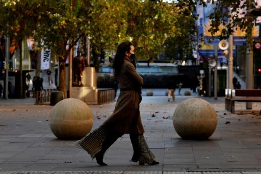 امرأة تضع كمامة في حي الاعمال في وسط سيدني في 25 حزيران/يونيو 2021. afp_tickers