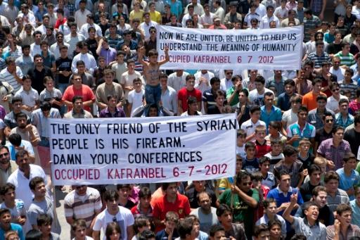 كل يوم جمعة، موعد التظاهرات الأسبوعية في بداية النزاع، كانت الأنظار تتجه الى سكان كفرنبل الذين كانوا يرددون “الشعب يريد إسقاط النظام” حاملين لافتتاتهم الملونة والملفتة بالانكليزية والعربية مخاطبين مجلس الأمن والدول العربية والغربية وطالبين مساندة السوريين في مطالبتهم بالحرية.