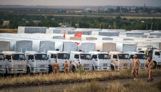 ووصل عشرات من الشاحنات الروسية التي كانت متوقفة منذ الخميس على مسافة ثلاثين كلم عن الحدود، في بلدة كامينسك شاختينسكي الروسية، الاحد والاثنين الى معبر دونيتسك الروسي.