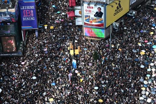 تظاهرة حاشدة في شوارع هونغ كونغ احتجاجا على مشروع قانون يتيح تسليم مطلوبين لبكين، في 21 تموز/يوليو 2019 afp_tickers