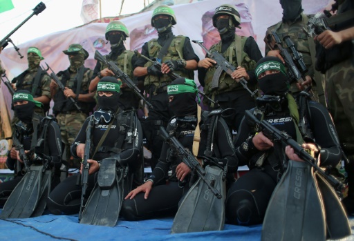 عناصر من كتائب القسام يعرضون معدات الغطص خلال عرض عسكري في رفح في 13 تموز/يوليو 2015 afp_tickers