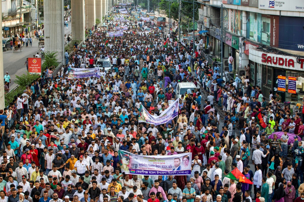 وكانت الشيخة حسينة التي حكمت البلاد بقبضة حديد فرت من البلاد في مروحية متوجهة إلى الهند في الخامس من آب/أغسطس فيما اقتحم محتجون قصر رئيسة الوزراء في دكا بعد تظاهرات امتدت على أسابيع.