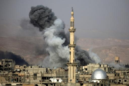 الدخان يتصاعد اثر غارة على بلدة عربين في منطقة الغوطة الشرقية قرب دمشق في 18 تشرين الثاني/نوفمبر. afp_tickers