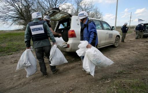مراقبون من منظمة الامن والتعاون في اوروبا في منطقة لوغانسك الانفصالية شرق اوكرانيا في 25 نيسان/ابريل 2017 afp_tickers