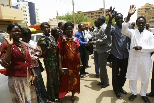 اقارب قسين من جنوب السودان يحتفلون بعد قرار المحكمة اطلاق سراحهما، في الخرطوم في 5 آب/اغسطس 2015 afp_tickers