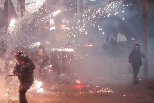 وإثر ذلك، تدخّلت قوات الأمن لمنعهم من التخريب، قبل أن تشهد الساحة عمليات كرّ وفرّ بين الطرفين تطورت إثر بدء الشبان برمي عناصر الأمن بالحجارة ومفرقعات نارية ثقيلة واطلاق الشتائم، وفق ما أفاد مصور وكالة فرانس برس. وعمدت قوات مكافحة الشغب إلى إطلاق الغاز المسيّل للدموع لتفريقهم وتمكنت من دفعهم للعودة إلى المنطقة التي قدموا منها.