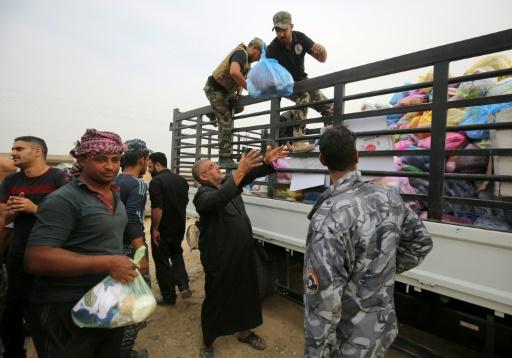 وتحت لافتة طرق تعلن الاقتراب من الموصل في شمال العراق مسافة 59 كلم، ينزل ابو احمد الشيعي الذي يغطي رأسه بكوفية بيضاء قدور الطعام.