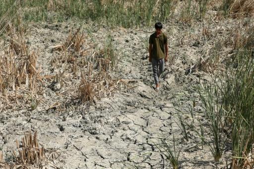 أصبح الشاطئ أرضا صحراوية انحسرت فيها المياه “قبل شهرين”، على ما يروي يوسف مطلق، مربي الجواميس البالغ من العمر 20 عاماً، الذي غطّى وجهه بوشاح يقيه حرارة الشمس والغبار.