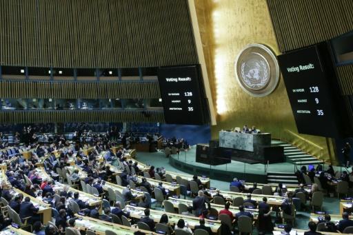 ومن اصل 193 دولة في الجمعية العامة، ايدت 128 منها القرار الذي يدين اعتراف دونالد ترامب بالقدس عاصمة للدولة العبرية في 6 كانون الاول/ديسمبر، في حين رفضته تسع دول هي الولايات المتحدة واسرائيل وغواتيمالا وهندوراس وتوغو وميكروزينيا وناورو وبالاو وجزر مارشال.