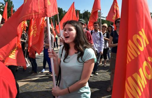 مسيرة لمؤيدي الحزب الشيوعي الروسي في موسكو في 2016 في الذكرى الخامسة والعشرين لمحاولة الانقلاب التي وقعت في 19 آب/اغسطس 1991 afp_tickers