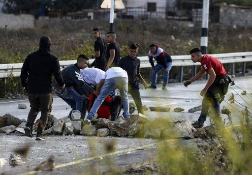 شبان فلسطينيون يجلون متظاهرا أصيب خلال مواجهات مع القوات الإسرائيلية قرب حاجز "بيت إيل" العسكري شمال مدينة رام الله في الضفة الغربية المحتلة في 14 تشرين الأول/أكتوبر 2022 afp_tickers