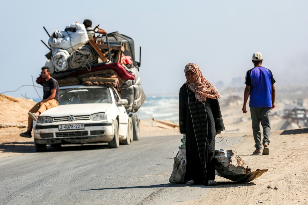 عربات تجرها حمير، وشاحنات صغيرة محمّلة بأكثر من طاقتها… في وسط قطاع غزة، آلاف الفلسطينيون يستخدمون وسائل النقل هذه للنزوح مجددا على طول الطريق الرئيسي المحاذي لشاطئ البحر، مع تكثيف إسرائيل هجومها على مدينة غزة.