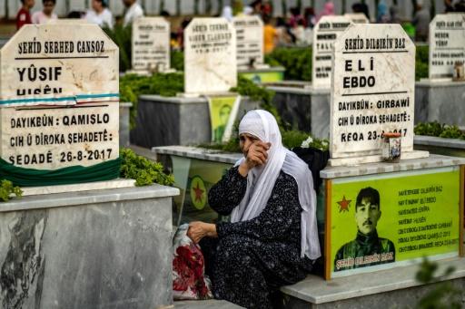 سيدة مسنّة تبكي عند قبر ابنها المقاتل في صفوف قوات سوريا الديموقراطية في 23 أيار/مايو 2020 في مدينة القامشلي في شمال شرق سوريا afp_tickers