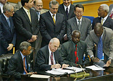 الوزير علي محمد عثمان يس: منذ أكثر من عشرة أعوام وأشغال هذه اللجنة تصب في ضغط سياسي على السودان وفقا لبرامج سياسية كانت معلومة. ونتيجة للخط المستقل الذي انتهجه السودان، تعرض لبعض المشاكل. فبعد الحديث عن مشكلة السودان (…) حسبنا أن بعد نهاية الحرب وتوقيع اتفاقية السلام مع الحركة الشعبية في الجنوب، يستطيع السودان أن ينطلق إلى الأمام بموارده الزاخرة. ولكن لسوء الحظ، فوجئنا بأن هناك مشكلة أيضا ظهرت في غرب السودان أي في منطقة دارفور.