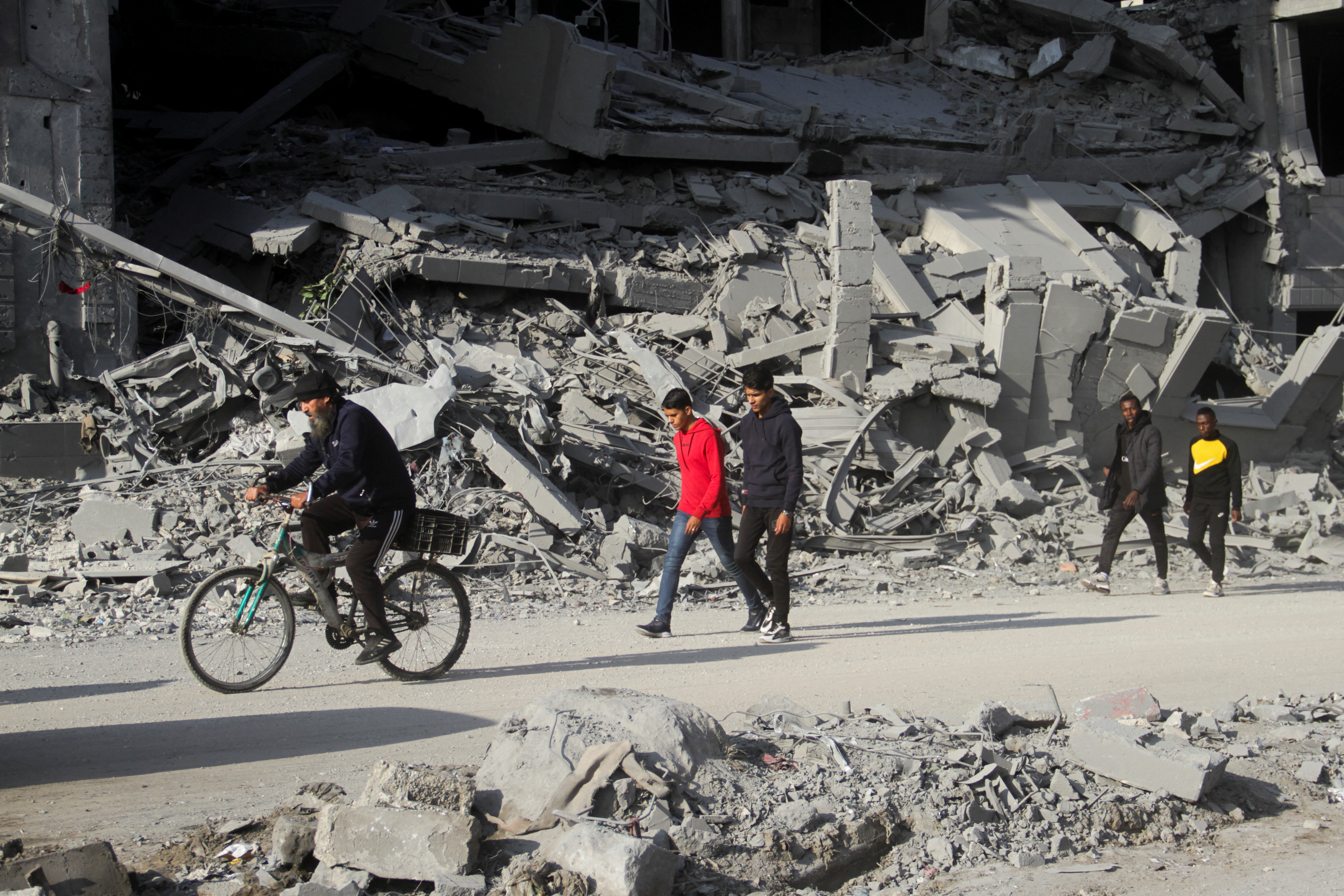 وفي شمال قطاع غزة، شق الفلسطينيون طريقهم عبر شوارع مدمرة ومغطاة بالأنقاض بعد أن شهدت المنطقة أعنف قتال خلال الحرب.
