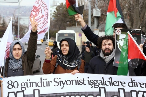 نشطاء مؤيدون للفلسطينيين يتظاهرون تضامنا مع محمد القيق المضرب عن الطعام والمحتجز في مستشفى شمال اسرائيل، امام مقر السفير الاسرائيلي في انقرة في 12 شباط/فبراير 2016 afp_tickers